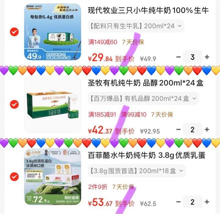 ⭐️现代牧业三只小牛纯牛奶100%生牛乳 200ml*24盒装 ,拍3件https://u.jd.com/0aqfijo