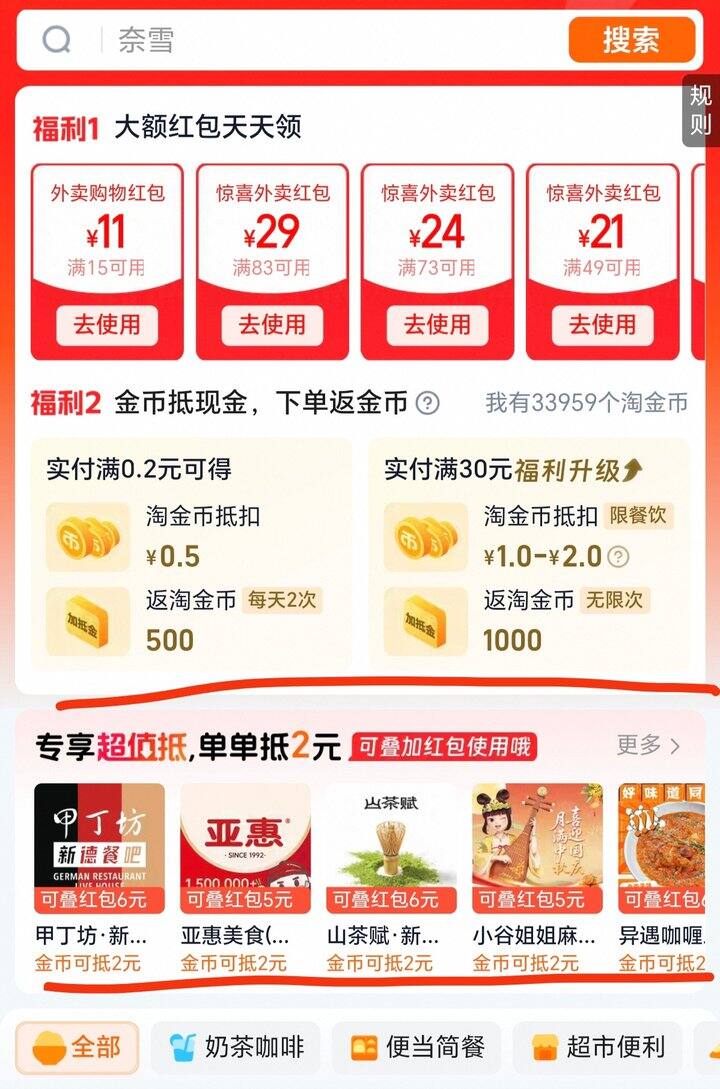 闪购页面搜索红包口令,可以领大额券,但是注意只能领 3 家,所以看好再领