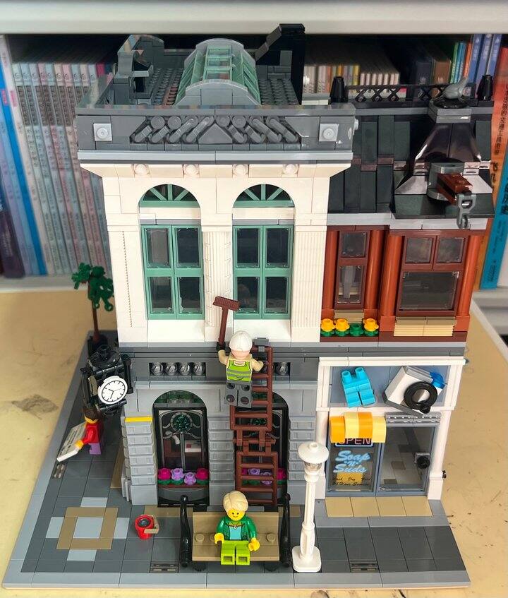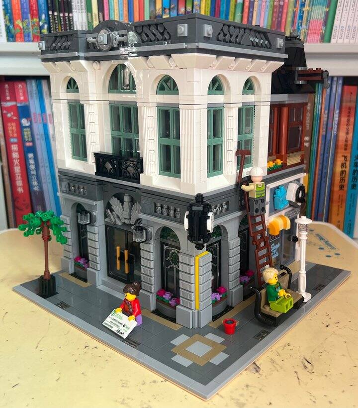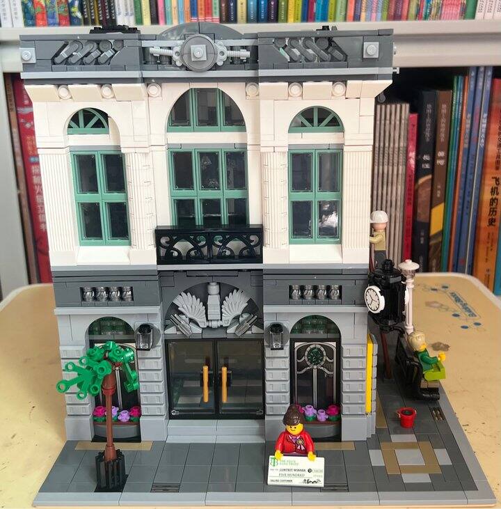 拼完大剧院后回购的砖块银行,砖块银行内饰和外观都很好看,人仔也比大剧院的好看一点(大剧院的人仔实在难看,长相还有点惊悚),下一套巴黎餐厅准备就绪[胖鹿冲冲冲]