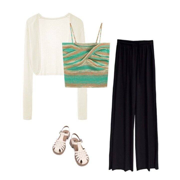 内搭:pxx 宅女学姐,搜“条纹针织吊带背心女夏季外穿设计感小众修身西装内搭无袖打底上衣”