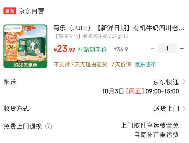 菊乐(JULE)【新鲜日期】有机牛奶儿童奶204g*18盒四川老字号