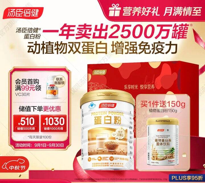 ⭐️ 汤臣倍健 免疫球蛋白乳清双蛋白*粉 专业增强免疫力成人中老年 蛋白*粉450g+植物蛋150g【中秋礼盒礼品】,拍1件