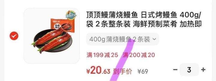 🌟顶顶鳗蒲烧鳗鱼 日式烤鳗鱼 400g/袋 2条整条装 海鲜预制菜肴 加热即食,拍3件
