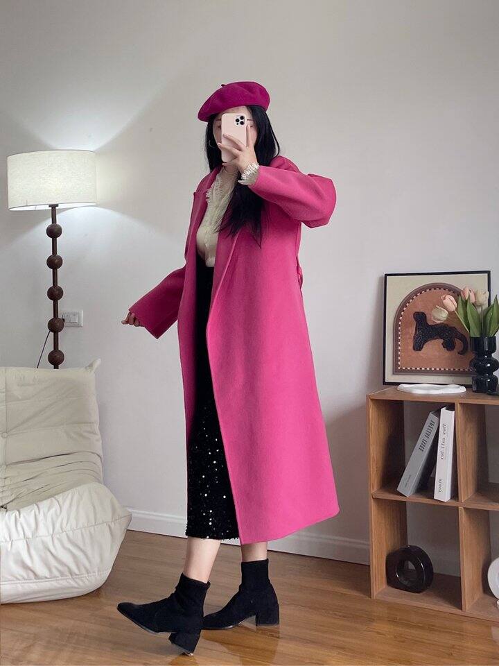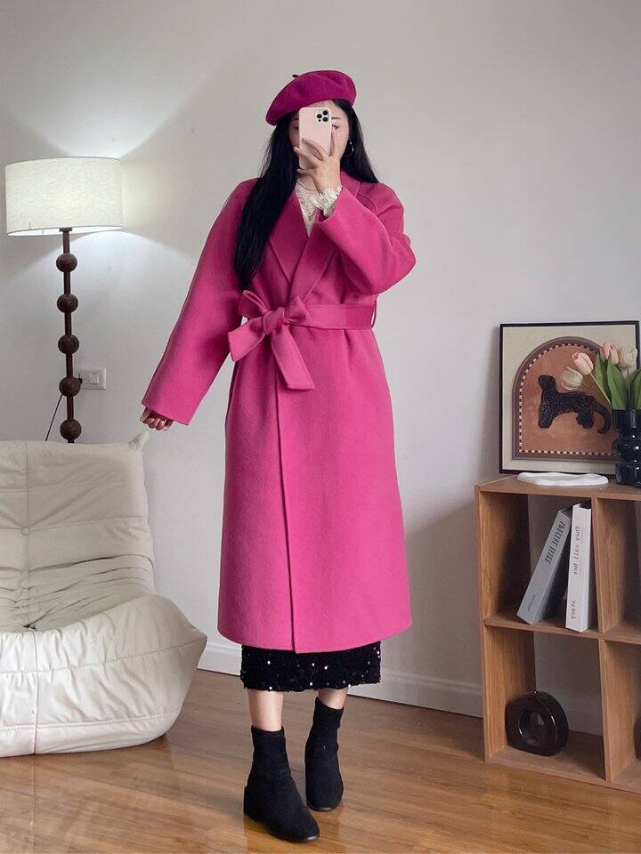 这是微信接的一件大衣佣金单 还挺有质感的 玫粉色显白显气质 这样穿谁信我120斤[哈哈]