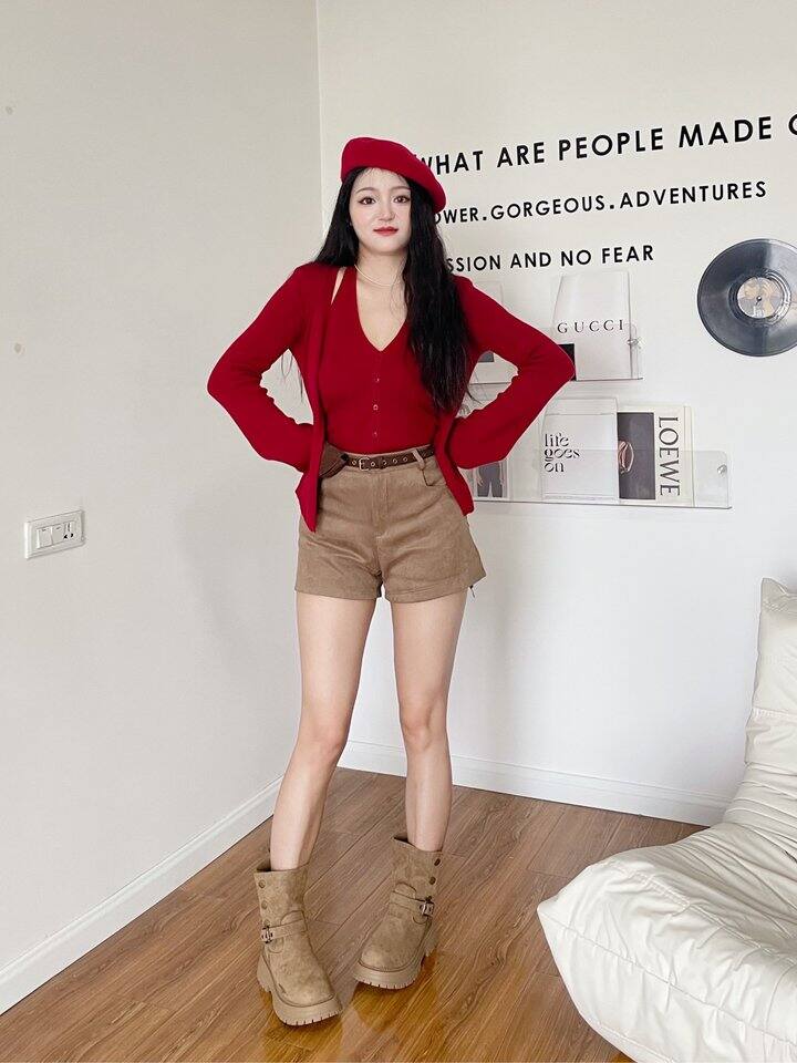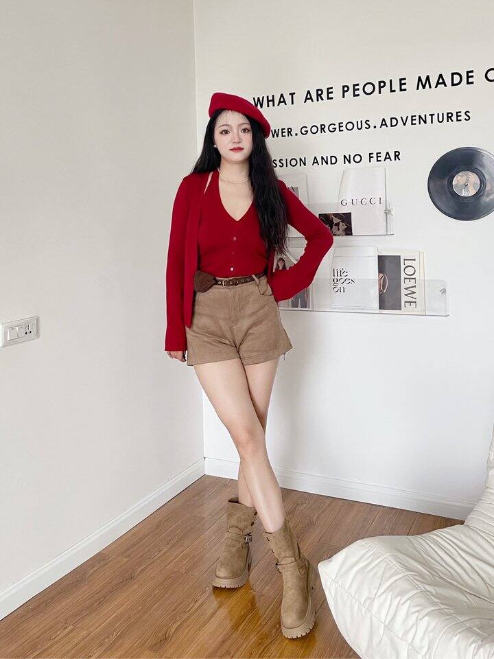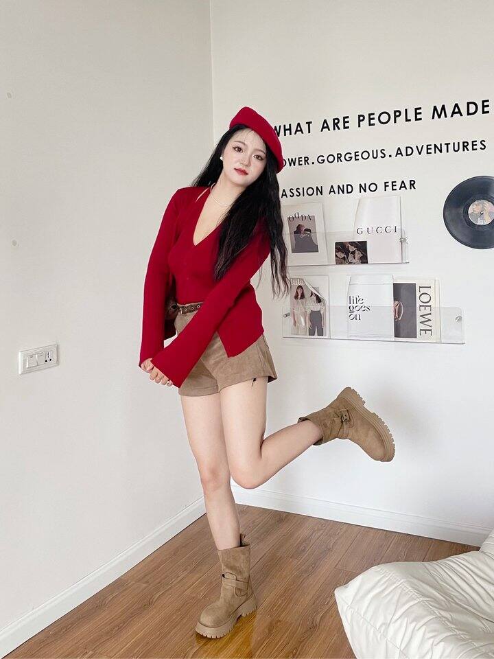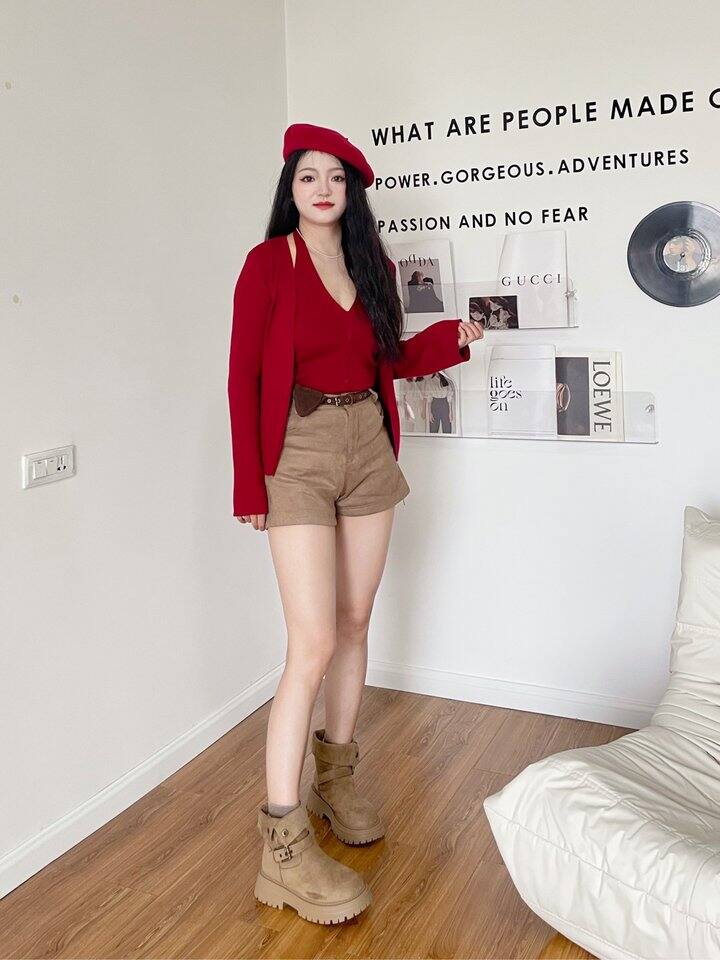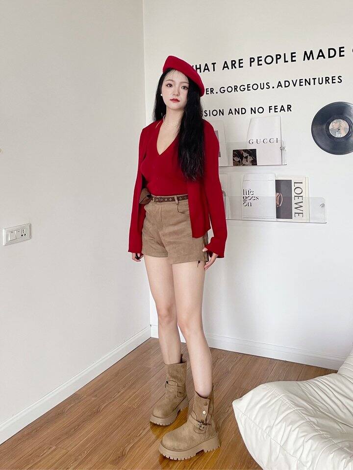 搭配🍑入手的麂皮绒短裤和新入手的短靴