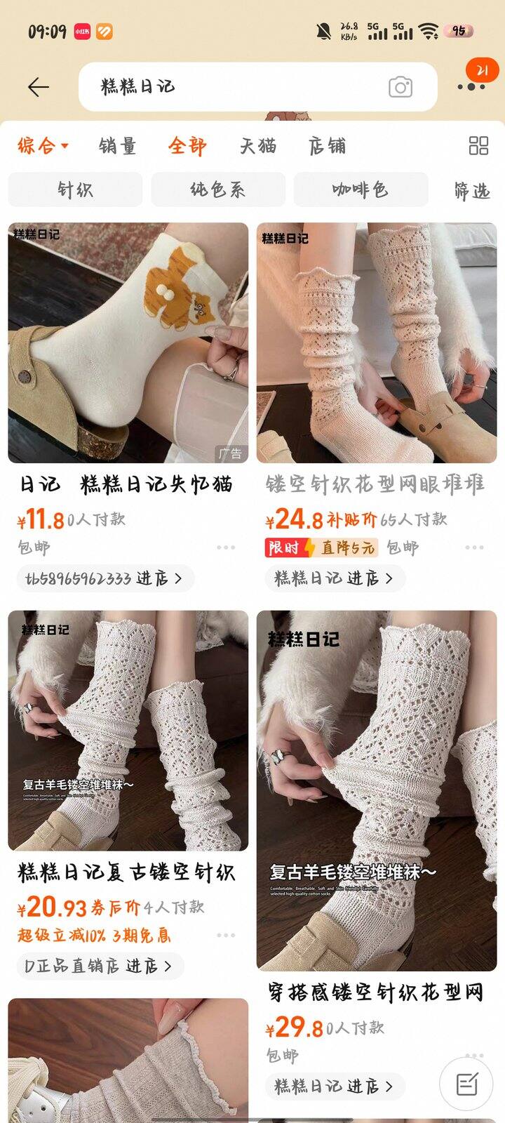 糕糕日记的堆堆袜,一黑一白,两双10r