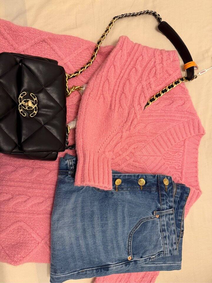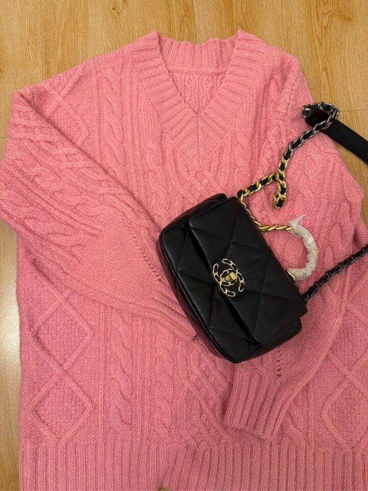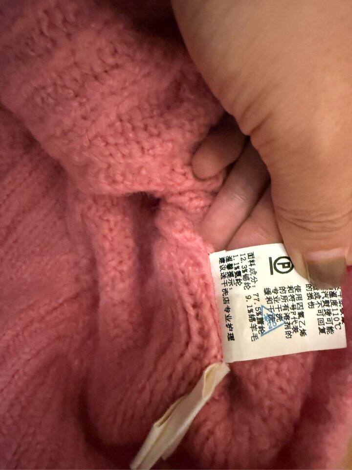 1.粉色毛衣是羊毛的,很厚实!几乎全新,这件很宽松,建议160+穿