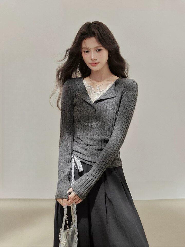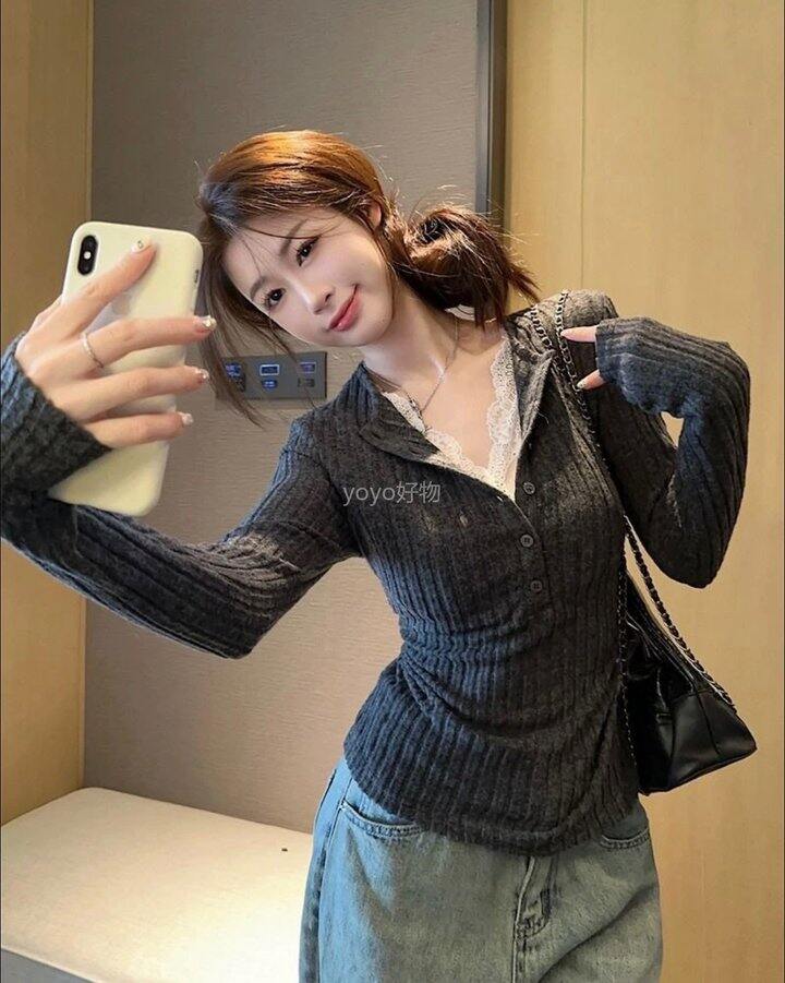 蕾丝拼接抽褶打底衫!💰59