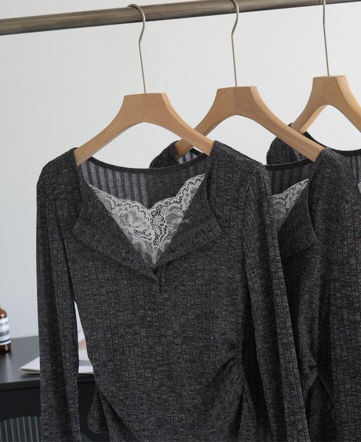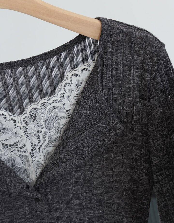 胸前拼接镂空蕾丝,让整件打底变得与众不同~