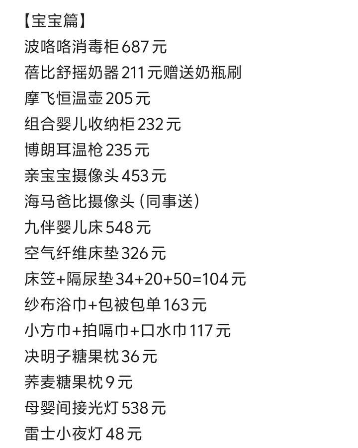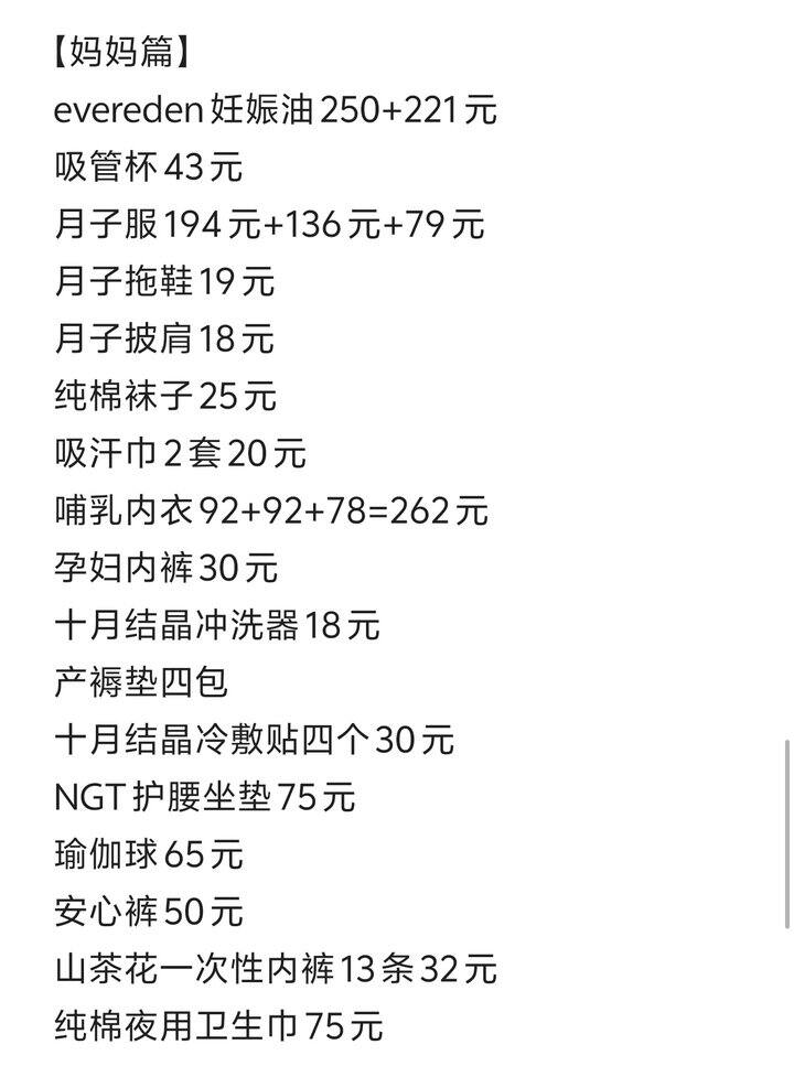 翻到备忘录📝看到当时记录的待产清单,和当时购买的价格,可以给需要的路友做个参考。