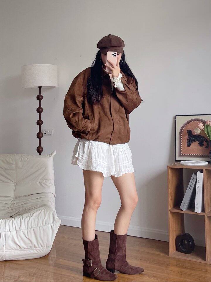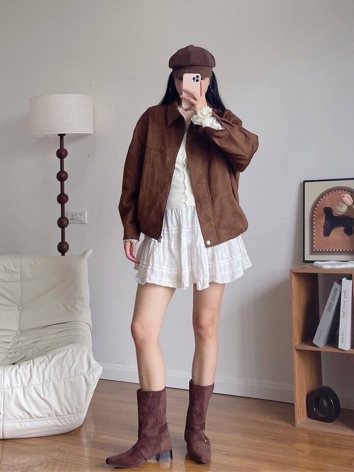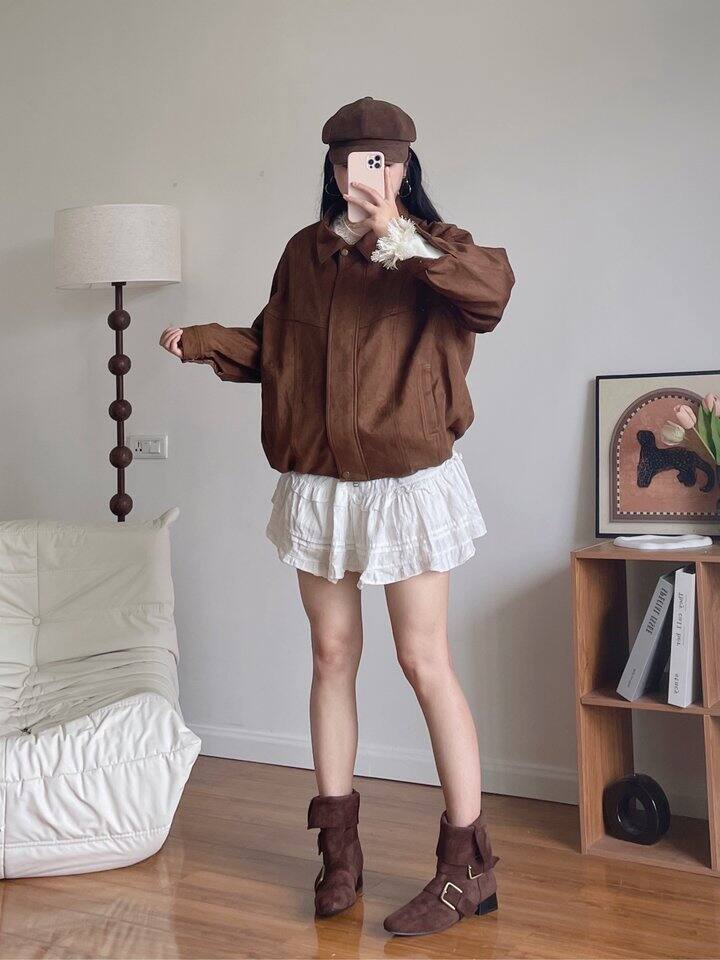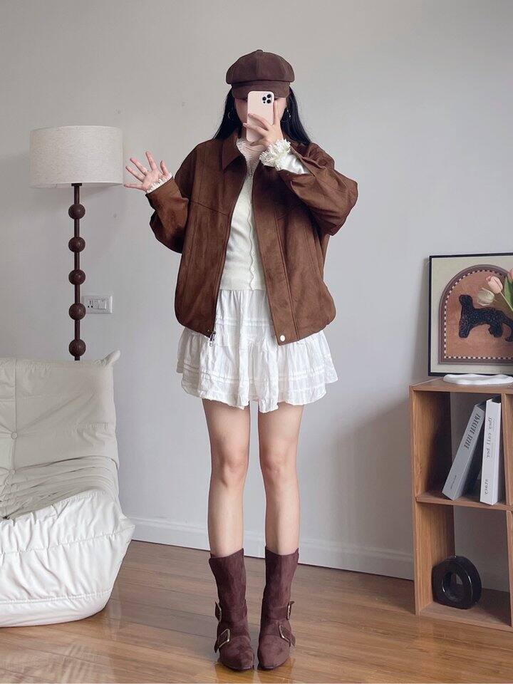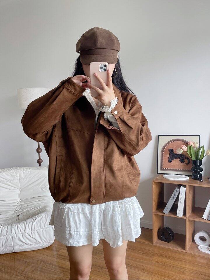 看了好久的麂皮绒外套,实物跟网图感觉不一样,色差大(已退)