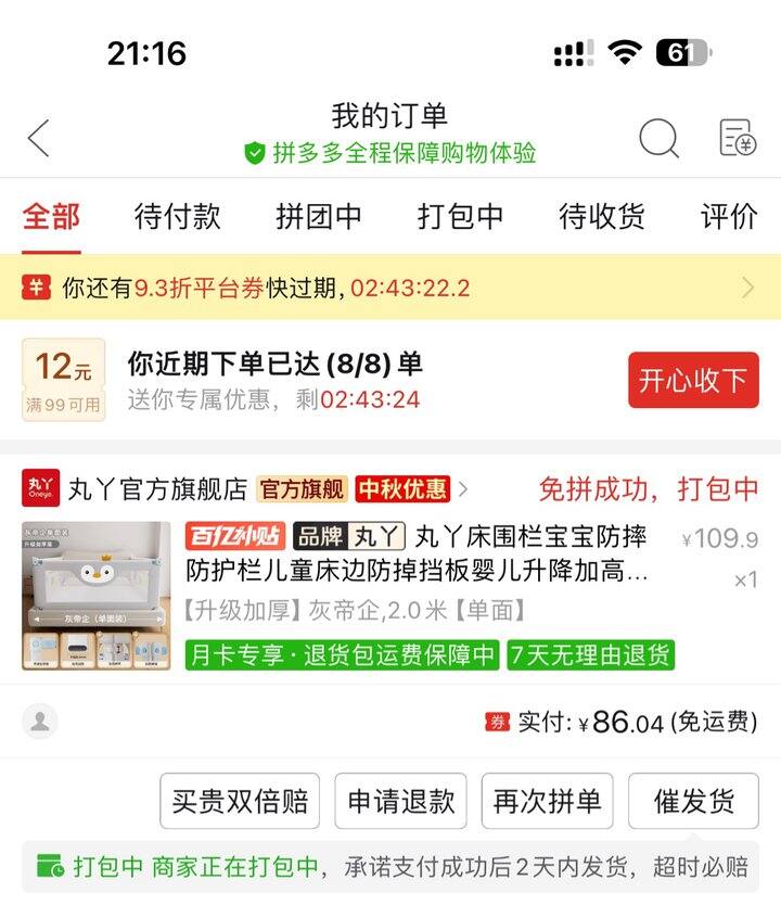 在我全网搜差价一顿操作下来,pdd胜出!1.8m79.9,2m才89.9!我们这二手的还要我65自提一分不少…!!