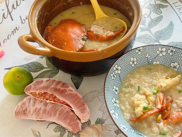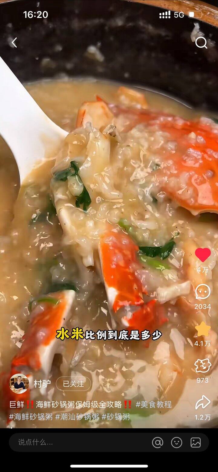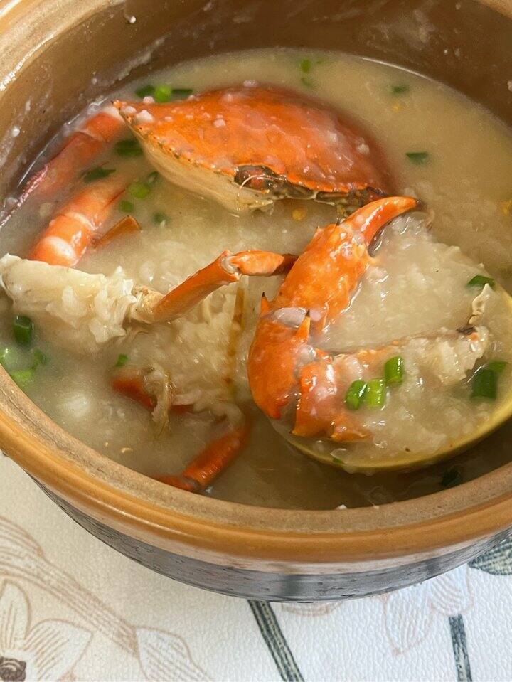 然后就是海鲜粥,最近是🦀的季节,家里人少的可以买一只螃蟹煮粥。又是用的村驴的菜谱哈哈哈,没放冬菜也好吃[馋嘴],沙茶酱是灵魂!