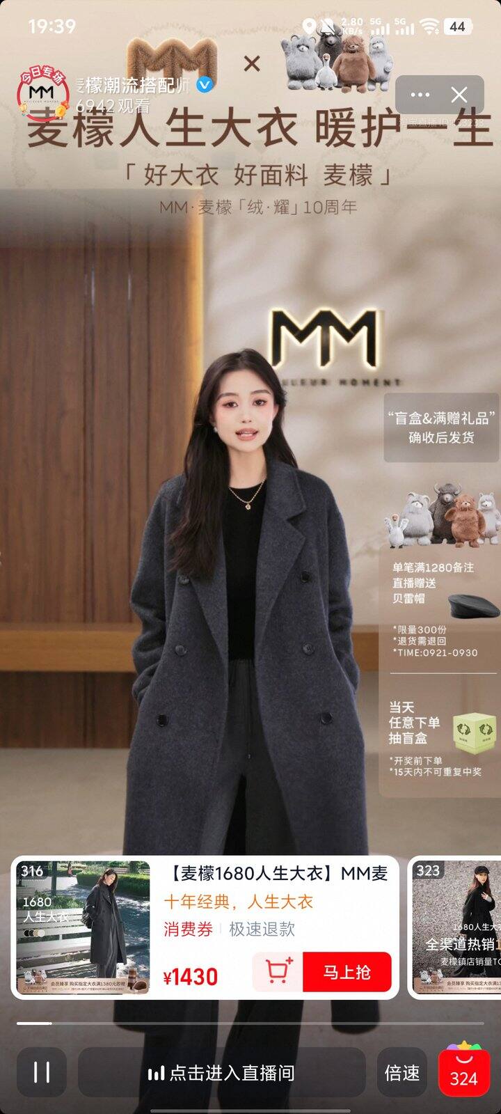 麦檬的人生大衣599get,含十几的羊绒所以不压身,版型很好很韩,颜色也很显白,爱了爱了[爱你]