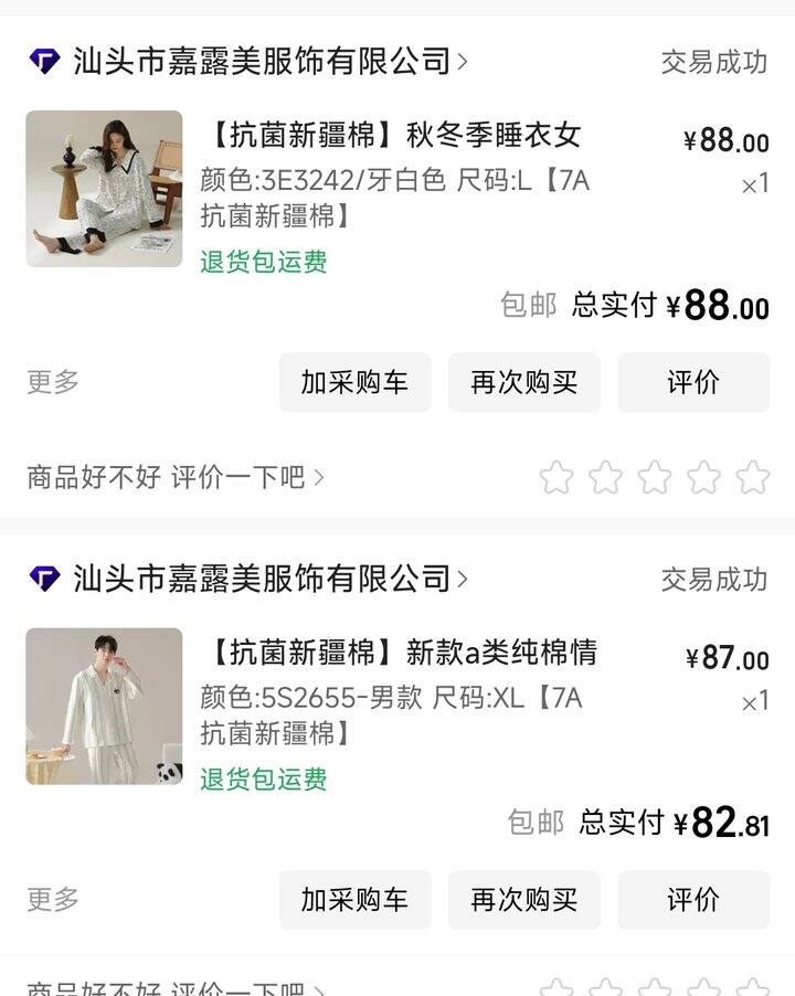唯一有一次不满意,是买的他家清仓款睡衣,材质还是舒服的,但是款式很紧身不好看。(果然清仓是有原因的,需要特别注意一下)