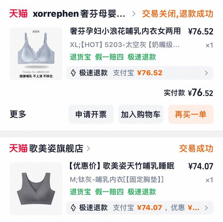 孕晚期才开始买哺乳内衣,孕前是对A,孕后底围涨到80,之前75的内衣用了加长扣还能穿。