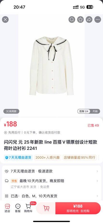 又开始买回韩单了,转了一圈还是觉得韩单跟一些日单衣服适合我,厚实的雪纺料,很适合搭阔版的一些针织开衫,主播直播的时候上身一眼种草。白色只剩中码了,但是这个码不大,中等身材都可以穿,好看~
