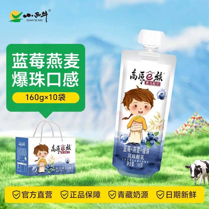 小西牛 蓝莓草莓燕麦爆珠酸奶160g*10袋 【礼盒装】