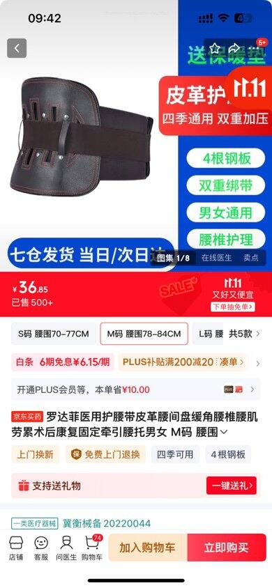 这个是在某书被种草的,说的护士站开的医疗器械,很好用,我就买了,果然不错,皮革的但是不闷,背部支撑力非常好,而且才37块钱便宜好用,我都想自留,感觉戴了之后腰很舒服,但退掉了,因为我妈妈腰短,这个又是皮革的,前面太宽,导致坐着的时候,会顶到🐻,很不舒服,但是如果你腰比较长,或者不胖,都是很舒适的,我比较瘦带着就很合适。还送了垫片,冬天带着也不会觉得冷。