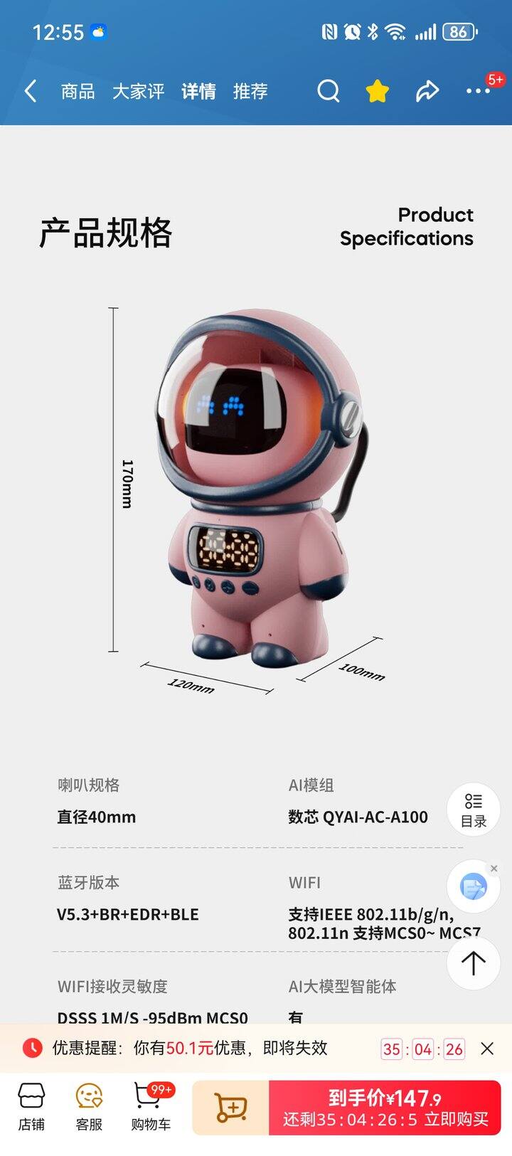 陪聊天的,其实和天猫精灵差不多的功能。为什么买这个呢?那天她陪我去做脸,等待很无聊(事先说好买玩具就只能玩玩具),硬拿了我手机去玩,刷视频,刷到了aibi口袋机器人,你们可以搜下看看,2800左右的价格,我当时就想一脚踹飞她!买东西越来越没底线,还美名其曰:“我给你钱!用我自己的钱!”回去的路上被我连骂加打,最后动之以情晓之以理,终于说不买了,于是我买了这个平替的给她玩。