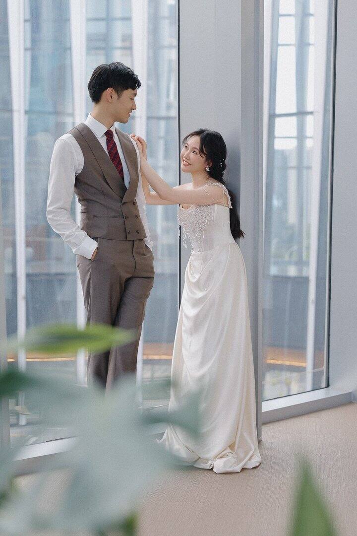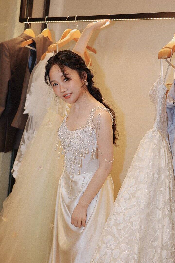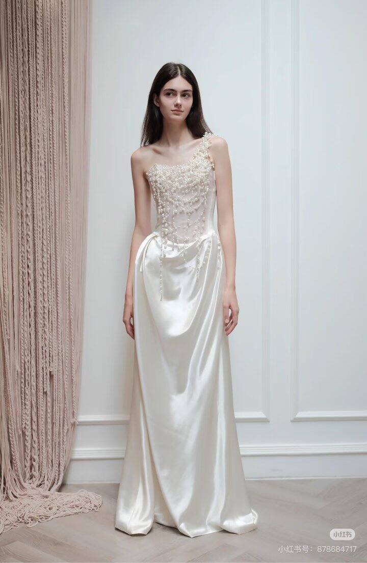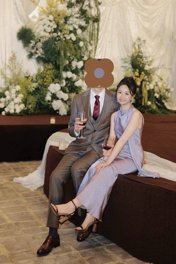 4️⃣:敬酒:因为厅很大,有近1000平,敬酒是个力气活,所以选了一条轻便好走更日常的裙子,也是🍑买的,400块这样,echo official 这家店铺推荐过了,真的很适合备婚的姐妹。搭配了一双细带凉鞋