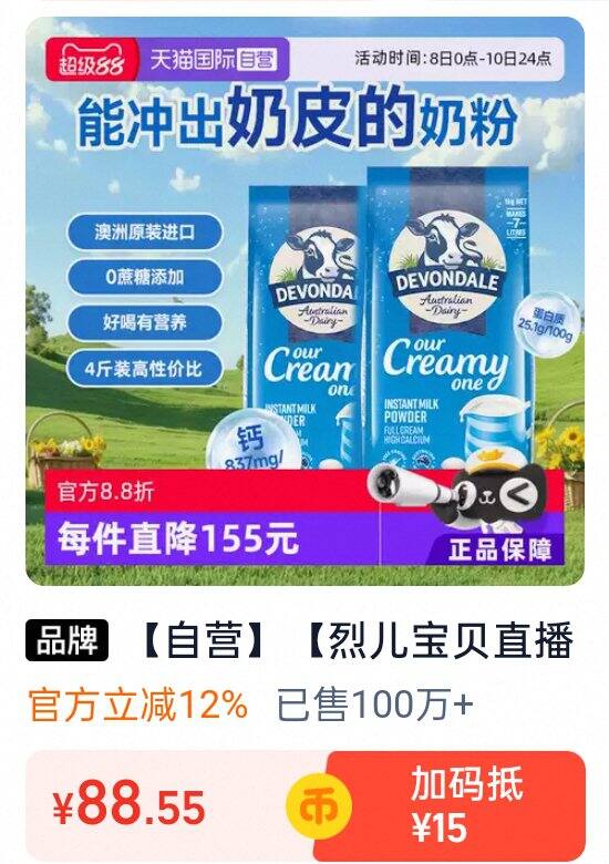 澳洲进口德运全脂高钙奶粉💰领4⭕️