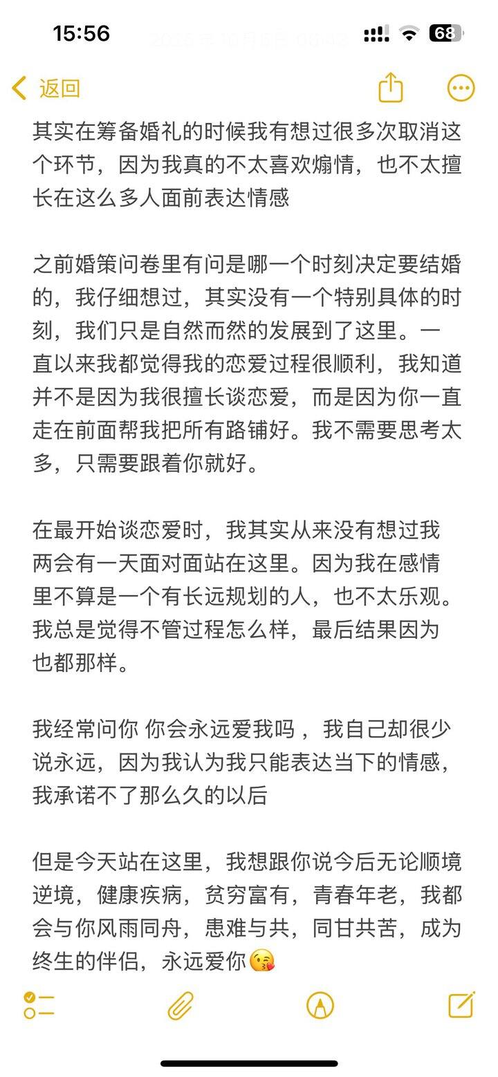 我还是会认为人没有办法许诺很久以后,但是至少在当下,我很明白自己的心意,也能感受到对方的心意。我觉得现在很幸福