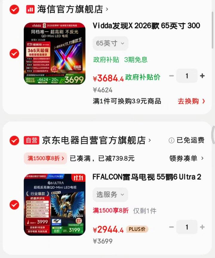 之前大促最低的时候 55 寸版本仅仅 2300 左右。