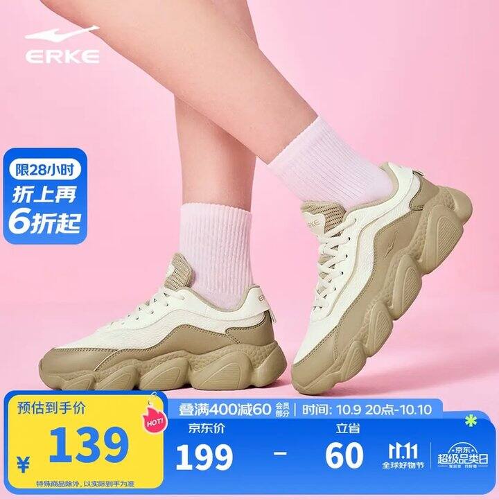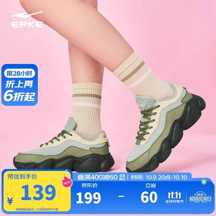 款式挺好看的,才59!鸿星尔克 甜心2.0 女网面运动老爹鞋