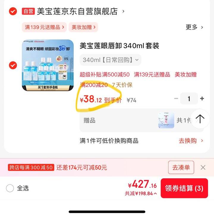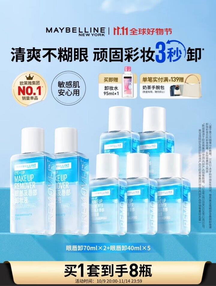 1,美宝莲眼唇卸340ml套装(70ml*2+40ml*5)卸妆油https://u.jd.com/01fGXRH