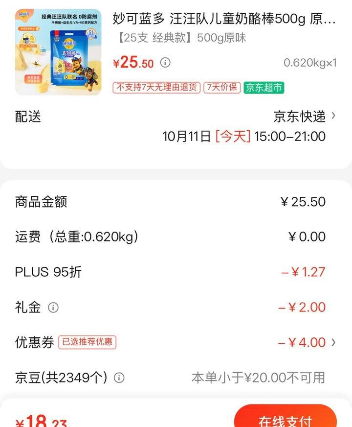 妙可蓝多 汪汪队儿童奶酪棒500g 原味