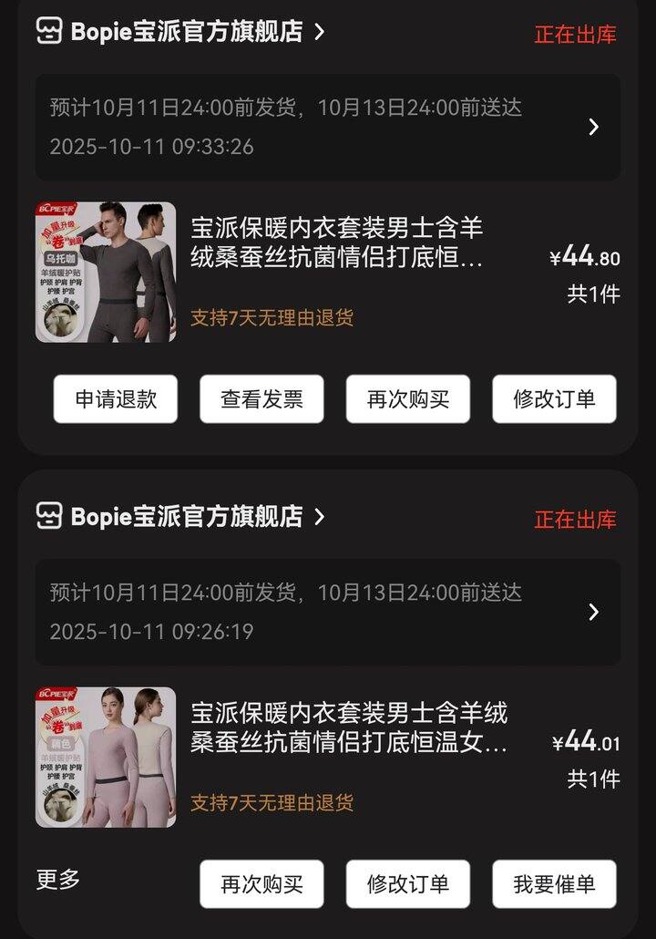 买了两套!史低价!44.9‼️宝派 山羊绒桑蚕丝奢暖保暖内衣套装,反馈很好