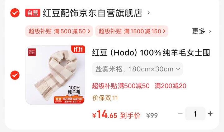 【可换颜色】红豆(Hodo)100%纯羊毛女士围巾格子保暖