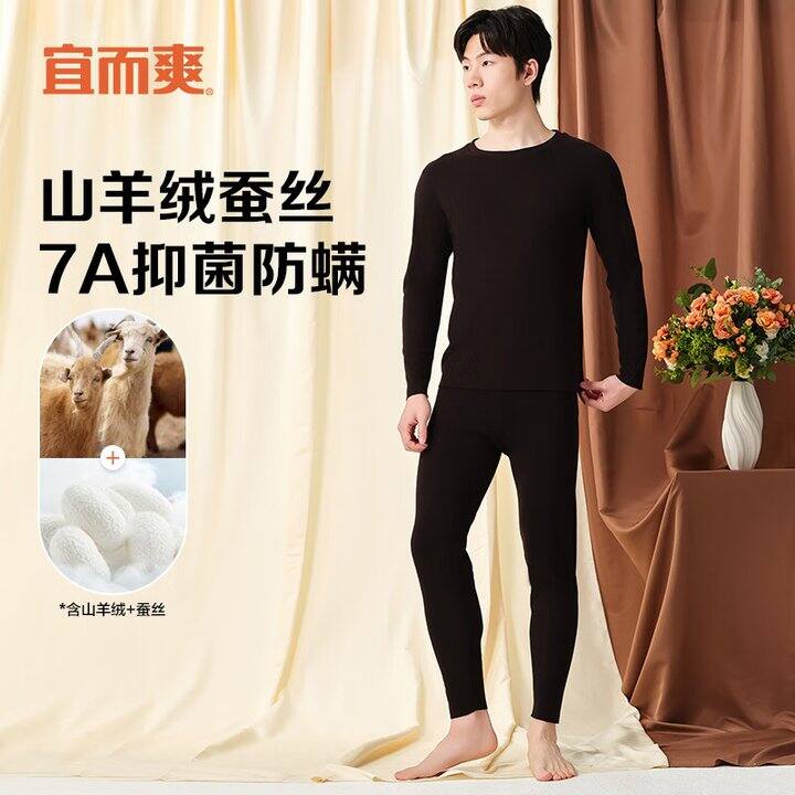 宜而爽 山羊绒磨毛秋衣秋裤套装💰39.9