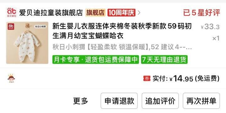 pxx,首页-潮流好价-天天抢五折券,到手14.95元,好评返现0.5元。
