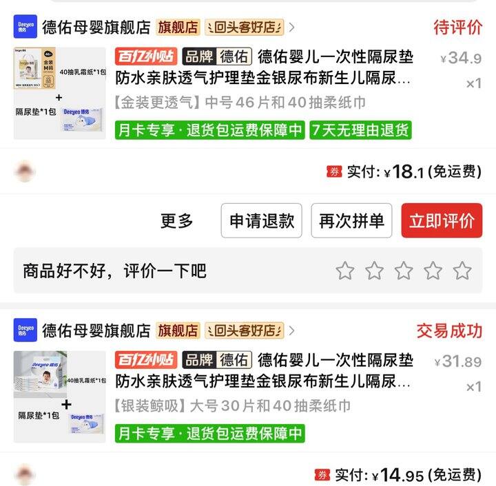 记得每天去点亮,兑换后可以买德佑金装隔尿垫,我也是朋友跟我讲买M或者L码数,别买S太小啦!