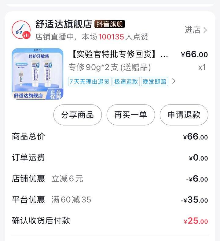 前几天30两支就够低了,今天直接25两支,牙膏有效期很久,大胆囤货吧[鹿尴尬]
