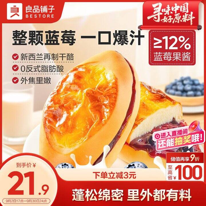 自营 良品铺子岩烧蓝莓面包500g💰14.9