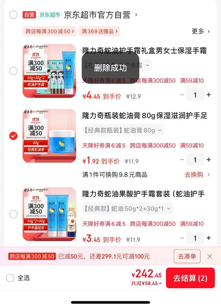 隆力奇蛇油护手霜(50g蛇油经典款*1+30g小仙女*2)