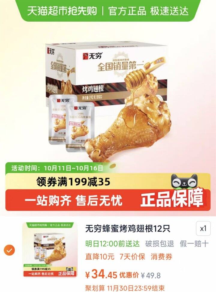 💠2.8/只‼️无穷蜂蜜烤鸡翅根