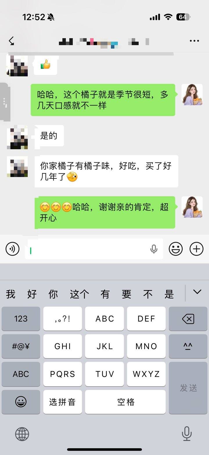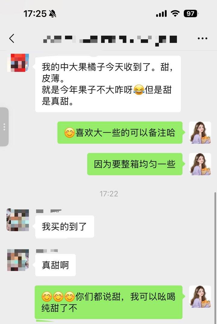 因为我自己也怕酸,客户没说很甜的时候我都不敢说纯甜了。