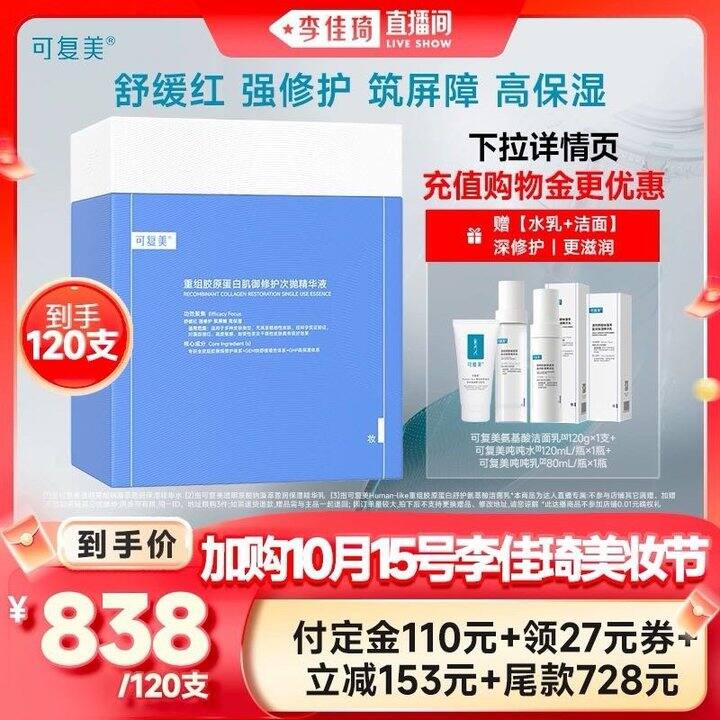 👇2、【双十一预售】可复美胶原棒120支:https://s.click.taobao.com/QXFZt2q,李佳琦直播间