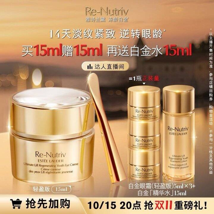 👇3、雅诗兰黛白金眼霜15ml送15ml+15ml白金水:https://s.click.taobao.com/H06pj2q,香菇来了直播间