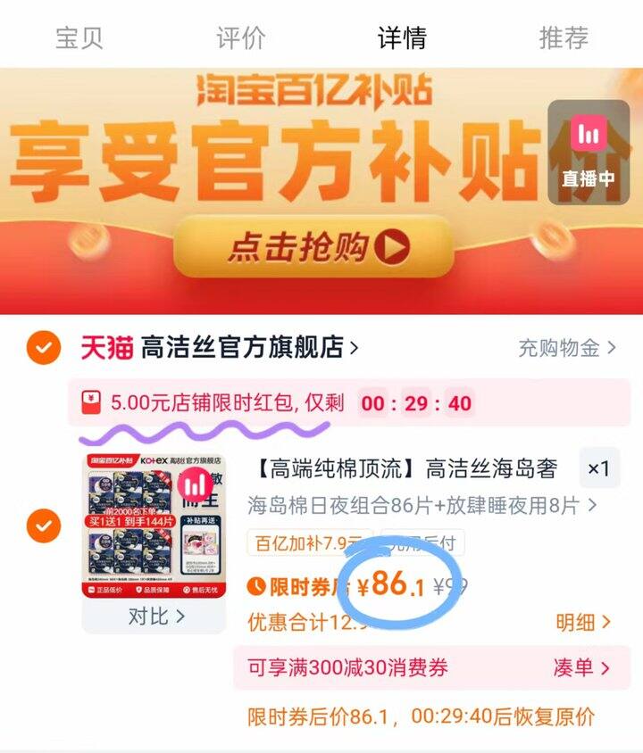 高洁丝 海岛奢宠卫生巾💰0.5/片 高端系列棉中白金