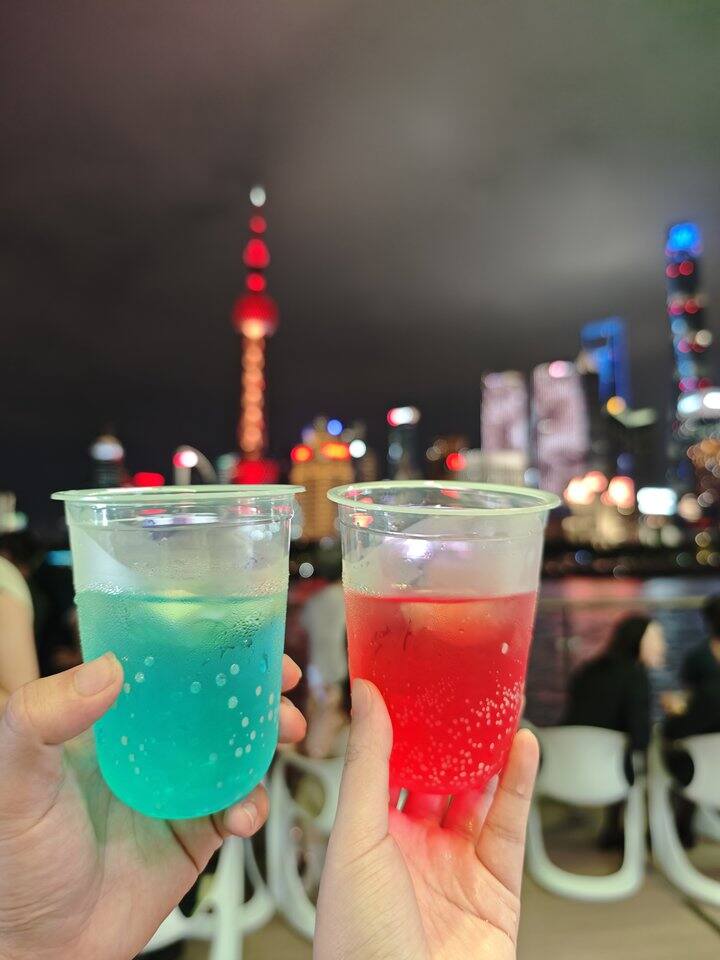 4.30到十六铺码头换票,5点多登船,上船就拍照,后面6点钟自助餐开放,就去吃饭,吃好天暗了,就开始拍夜景。