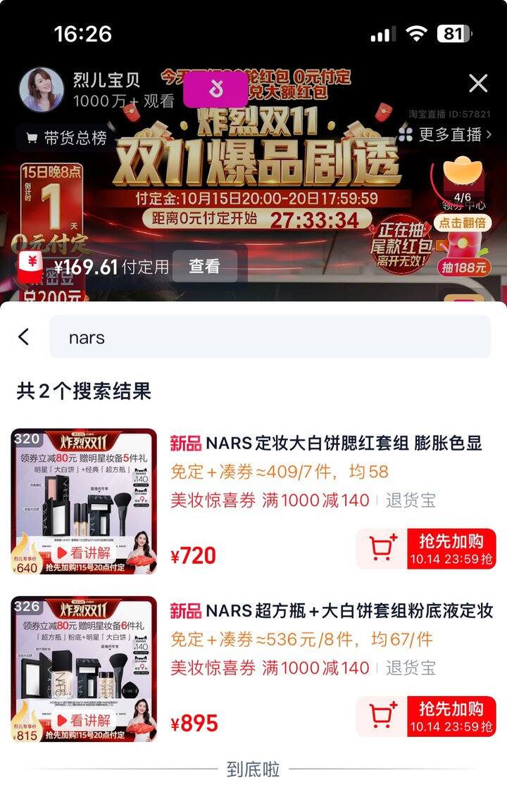 首要目标nars大白饼3g装,