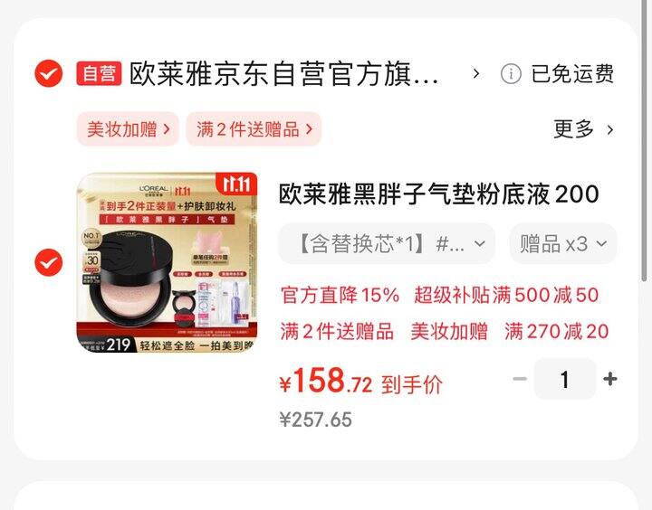欧莱雅 黑胖子气垫(1正1替)💰157r