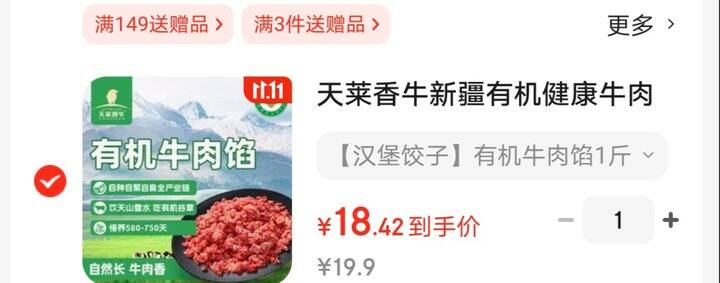 天莱香有机牛肉馅好价,18.4/斤