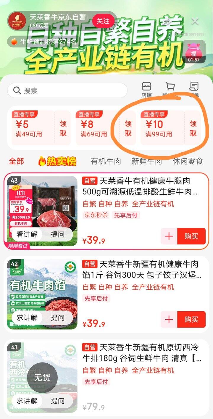 很久没搞活动了!他家品质不用说,有好价就可以入。今天一斤不到28~直播间领99-10的券