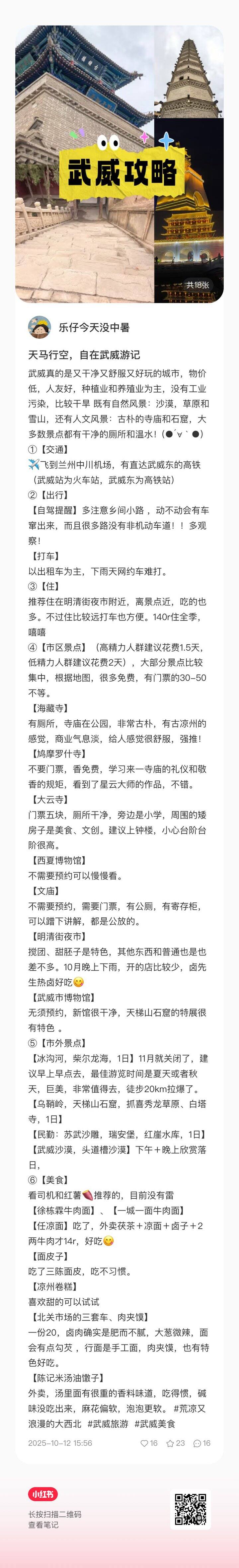 行程安排合理,物价也低,很舒服,推荐,比较小众,攻略好了,景点评价明年再写,武威淡季住酒店真的美滋滋,138住全季哈哈哈
